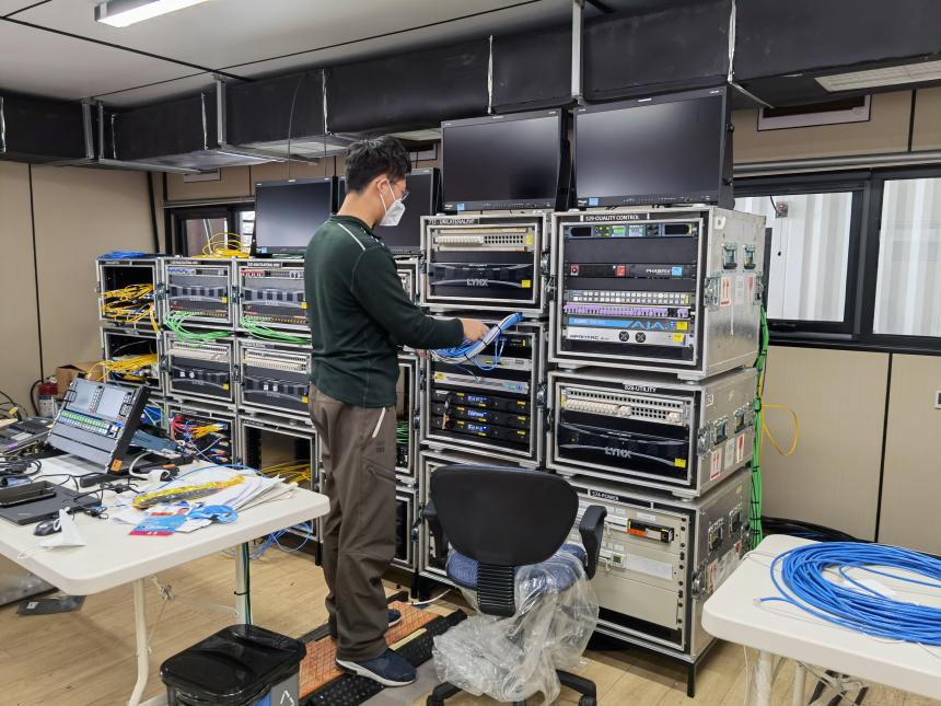 钱宇梁被分配的岗位是张家口和延庆赛区的技术运行中心助理,主要工作是协助外方团队进行转播线路的检测安装。他跟随着所在团队,对于张家口和延庆赛区的全部9个场馆的TOC设备进行全面、系统的前期检测,还完成了部分安装工作。