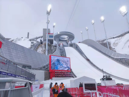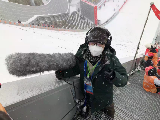 2月5日是“雪如意”场馆的第一个比赛日,祝楚龙提前30分钟便到达了自己的岗位上——赛道两侧的铁楼梯上,是的,他第一天担任的是音频组的工作,负责站在离地50米的高处用手中的麦克风收取运动员破空而过时的声音,伴随着跳台滑雪运动员从空中飞过,手中的枪式麦克风也紧紧跟随着,耳机中传来呼呼的风声和干脆的落地声。