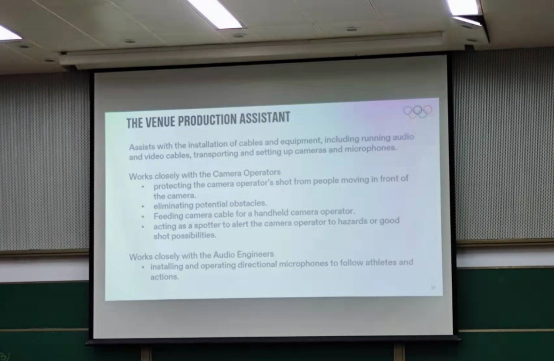数天之后,培训正式开始。BTP项目负责老师给同学们介绍了BTP项目的概况、工作内容,北京冬奥会场馆情况、比赛情况以及人员岗位组成情况。为了让同学们更加清楚地了解冬奥会整体情况以及BTP具体项目内容,老师准备了详细的PPT进行讲解。第一次接触这些信息的祝楚龙,在课堂中认真倾听,详细记录,用心学习,只为了在正式上岗工作时能够减少发生错误。培训的第二天,在老师的指导下,他学习了如何架设摄像机,如何收纳整理电线以及如何用麦克风收音等具体操作,在不断的练习后,他深知要圆满成功转播一场比赛所需要付出的努力。只有在充分了解比赛过程的基础上,凭借过硬的专业技能和极强的临场反应能力,才能为冬奥会的观众们带来一次酣畅淋漓的比赛观赛体验。在培训的最后,老师给予了他们一次自己转播一场比赛的机会。肩上沉重的摄像机,手上沉甸甸的电线不仅是昂贵的转播设备,更是肩负的一份无与伦比的责任。