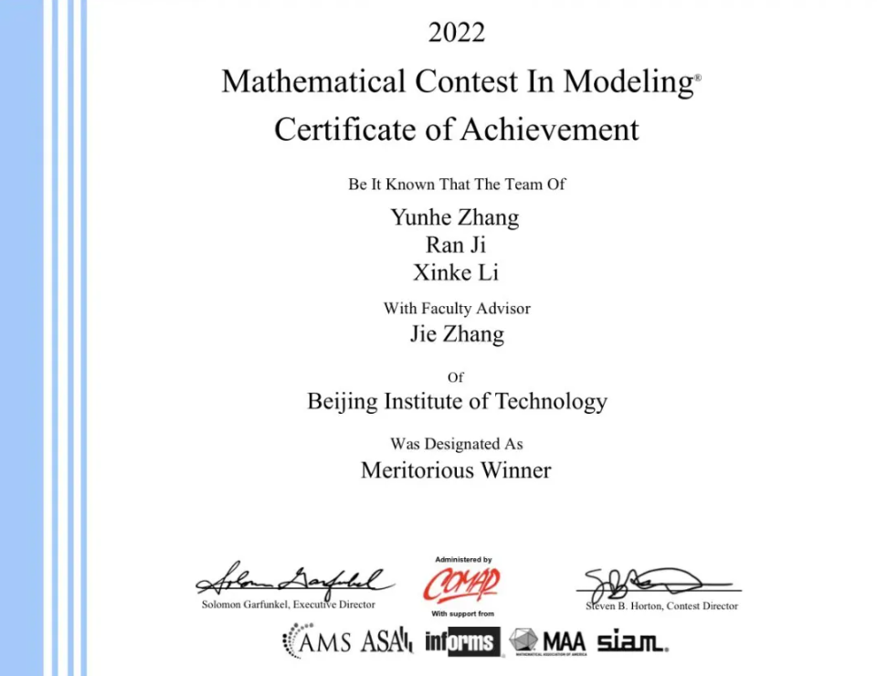 在校学习期间,张雲赫33门课程获得优秀成绩,6次获得优秀学生学金,3次获得校级优秀学生荣誉称号。同时他还获得美国大学生数学建模竞赛M奖(一等奖),北京市大学生集成电路设计竞赛数字组一等奖等多项省部级奖项。