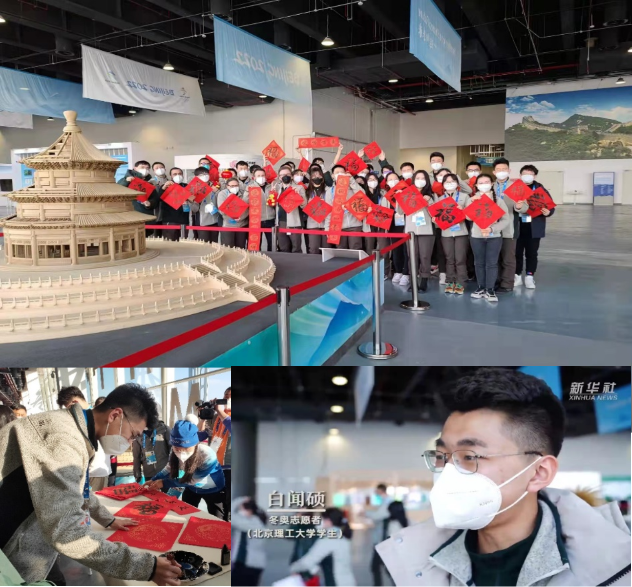 “这可能是很多同学第一次在外过春节,我们想在冬奥会主媒体中心营造更多的年味儿,把中国传统春节的喜气热闹和外国朋友一起分享,让他们也感受一下中国文化的魅力。”白闻硕在接受新华社记者采访时说道。作为冬奥会媒体转播实习生临时党团支部书记,他积极响应学校与学院的号召,带领支部委员和学生骨干们一起在工作场馆营造浓浓年味儿,给场馆工作人员带来了一次难忘的春节体验。“我们教外国人写福字,给他们讲中国传统节日的习俗,他们非常感兴趣。冬奥会不仅是体育的盛会,于我们而言,更是一场文化盛会,这让我收获颇丰。”这场热闹的除夕活动得到了新华社、北京日报、CGTN等多家媒体的报道,白闻硕和同学们用真心和热情为北理工服务保障冬奥会媒体转播工作取得了“开门红”。
