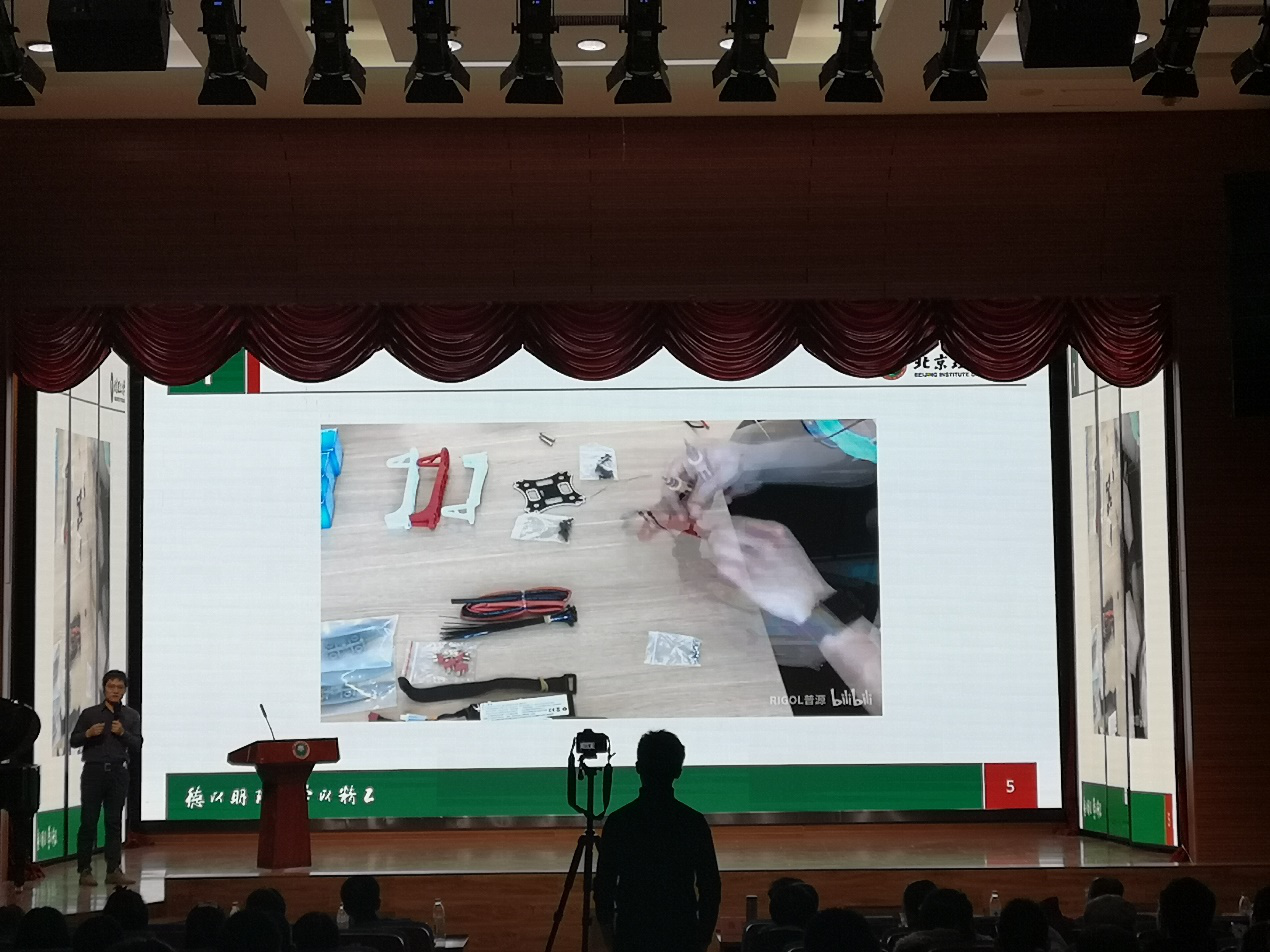 宇航学院飞鹰队指导教师宋韬老师则重点介绍了四旋翼组装与实飞、玩转无人机、四旋翼建模与自主飞行和四旋翼图像识别四个实践创新项目,分别在飞行器控制、无人机信号控制、飞行器建模和图像识别和处理四个方面培养学生的动手实践和思维创造能力。