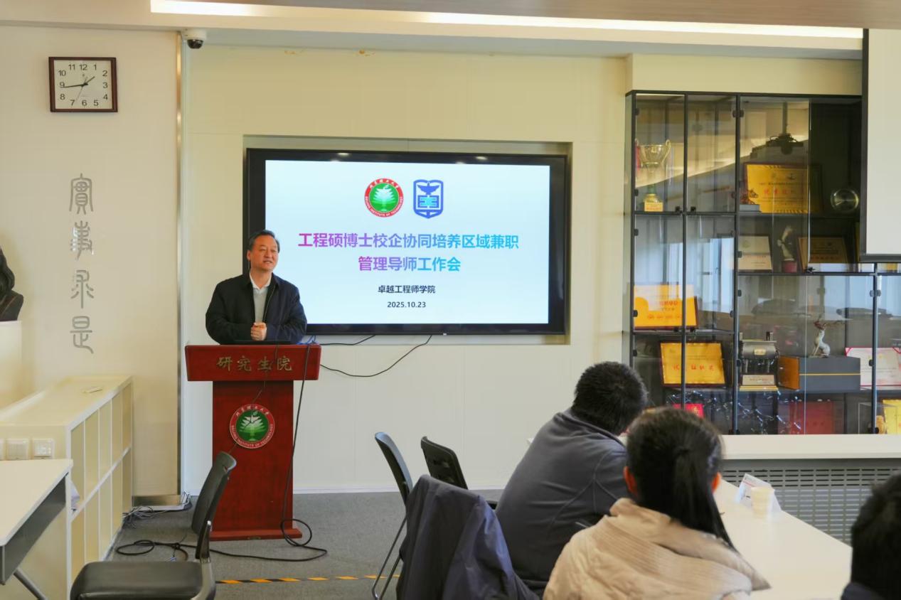 本次工作推进会上,王军政围绕国家卓越工程师培养与产教融合战略部署,简要介绍了新时代工程硕博士培养的背景与意义,汇报了我校“6+1”校企协同培养体系,以及在建设精品课程、教材、工程案例、工程师技术中心等方面取得的阶段性成果,并对区域兼职管理导师的工作职责、具体要求、支持保障政策等进行了重点介绍,切实做到权责匹配、激励到位。