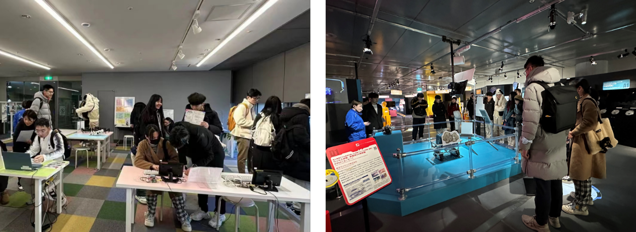 1月16日,研学团参访TEPIA先端技术馆,体验了投影触摸屏、提问发电、柔性3D打印、发声墙布等前沿科技产品,并在“创造空间”中亲手体验了可拆卸模组、图形化编程器等有趣的电子产品。