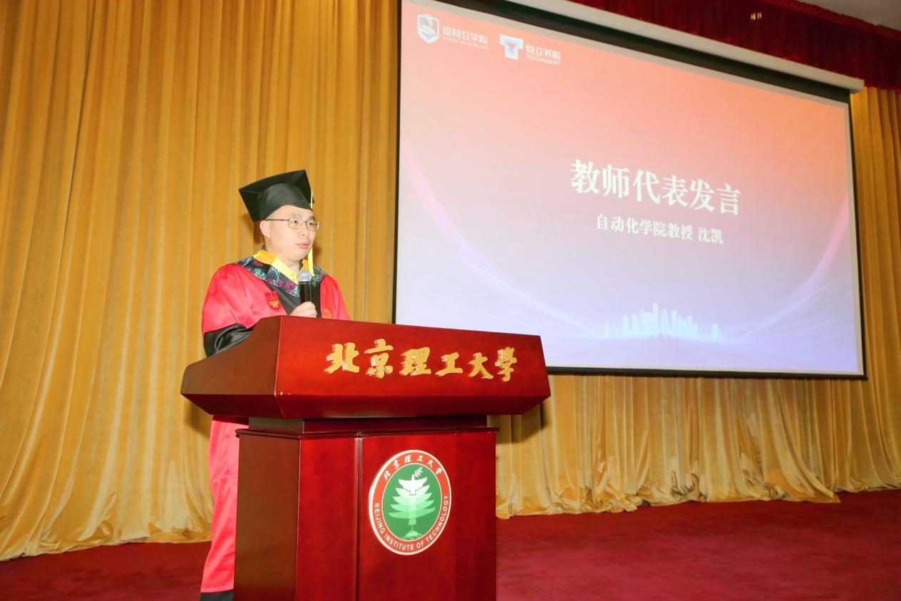 必威西汉姆联2003班班主任、自动化学院沈凯作为教师代表发言,四年的时光里,他作为班主任见证了同学们在学习上的不断进步和成长,陪伴同学们度过了一段美好的校园时光。他勉励同学们牢记青年学子的责任与使命,饱含追求真理的热情和执着,以创新的自驱力应对未来,希望同学们毕业之后能够在自己热爱的科研领域担当作为,为祖国的繁荣发展贡献青春力量。
