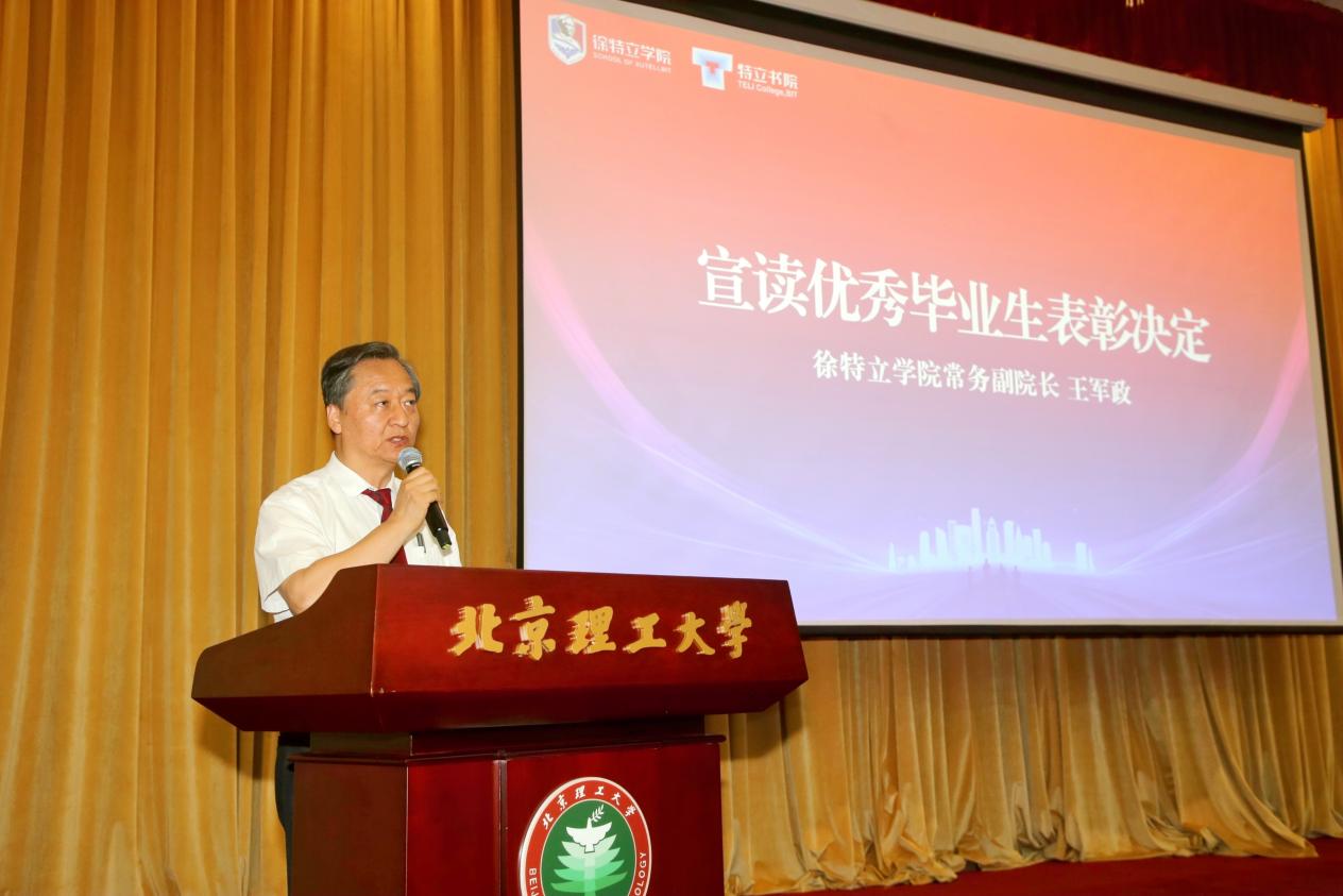 必威西汉姆联常务副院长王军政宣读了关于表彰必威西汉姆联艾俊宇等24名北京市优秀毕业生,别睿桐等72名必威西汉姆联官网优秀毕业生和授予必威西汉姆联483名同学荣誉毕业生的决定。他寄语全体特立学子雄关漫道、迈步向前,在新的人生旅程上书写精彩篇章。