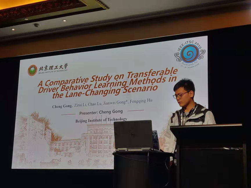 在“一对一”学术导师、机械与车辆学院智能车辆研究所龚建伟教授的指导下,必威西汉姆联2016级机械工程方向本科生龚乘的论文《A Comparative Study on Transferable Driver Behavior Learning Methods in the Lane-Changing Scenario》经过同行评审与编委评审后被会议接收。在学院国际化培养计划的支持下,龚乘作为第一作者受邀赴新西兰参加会议并在Special Session on Human Factors in Intelligent Transportation Systems议程进行口头展示汇报。龚乘介绍了基于类人驾驶经验的可迁移驾驶员模型,展示了针对驾驶员模型可迁移性上的对比研究。研究实现了在仅需较少数据量的情况下建立较高精度驾驶员模型的目的,减少了驾驶员模型学习建立所需的经验数据及其带来的高昂的采集成本,对未来建立个性化先进驾驶员辅助系统(ADAS),提高驾驶员接受程度提供了一个新的思路。