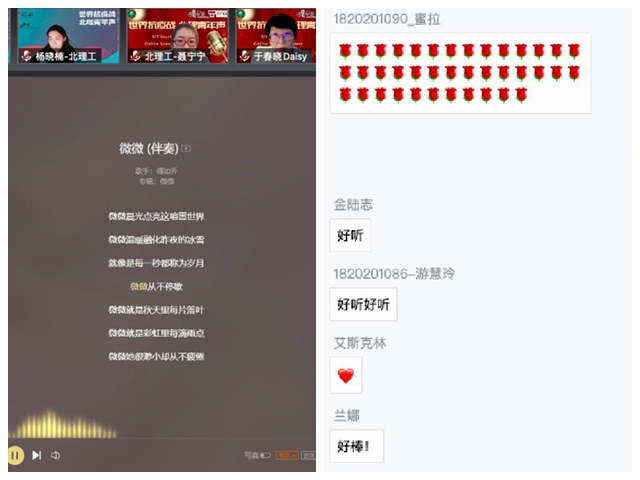 “坚强传递着善良的力量,希望在人间守家国安宁”,一曲由北理工国际学子隔空对唱的《勇者之心》歌颂疫情爆发以来无数白衣天使不惧艰险、呵护生命的无私奉献精神,渲染了活动氛围,激发了北理工青年担当作为的勇气和决心。嘉年华设上下半场英语演讲比赛环节,中间穿插学生才艺表演,9位韩国、孟加拉、巴基斯坦等国籍参赛留学生声情并茂地讲述了疫情以来的所见所思所感,表达了对中国疫情防控相关政策的支持和理解,并以个人经历叙述了被关心关怀的具体事例与感受;10位特立学子围绕自身学业进展、宿舍生活等讲述了北京疫情防控形势严峻以来,北理工全体师生员工齐心抗疫、共克时艰的故事,表达了对奋战在疫情防控一线学校管理团队、师生员工的感激之情。令闻外籍学子演奏、演唱了《Heal the World》、《微微》、《孤勇者》等歌曲,用歌声传递心声及期盼,美妙的旋律、悠扬的歌声点燃了全场师生的热情。