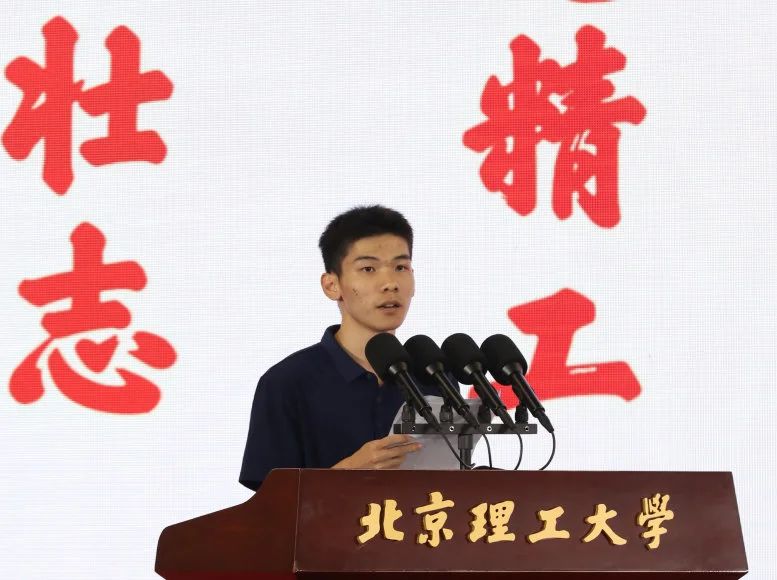 来自未来精工技术学院的郭范结代表全体2023级新生上台发言。郭范结同学在发言中表达了自己对大学生活的思索与追求卓越的决心。作为一名新特立人,他表示:他们将以理想为引领,用奋斗做航帆,与志同道合的同伴们在北理的浩瀚海洋中探索知识、探寻自我;坚持严谨的科研态度,不畏苦难,不懈追求,将无悔的青春奉献于祖国的富强事业。
