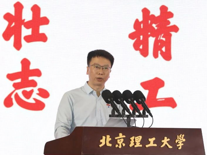 来自信息与电子学院的班主任及学育导师代表秦同老师上台发言。秦同老师向全体2023级新生的到来表示了热烈的欢迎。他向新生们提出了三点期望与建议:一是建议同学们在大学期间的努力要有规划性,设计性并且要持之以恒的努力下去;二是期望同学们要在思想上学会独立,也要学会听取他人意见;三是希望同学们能继承北理工的“延安根、军工魂”,怀揣家国情怀、努力拼搏,以战斗的姿态创造我们国家的更多第一。