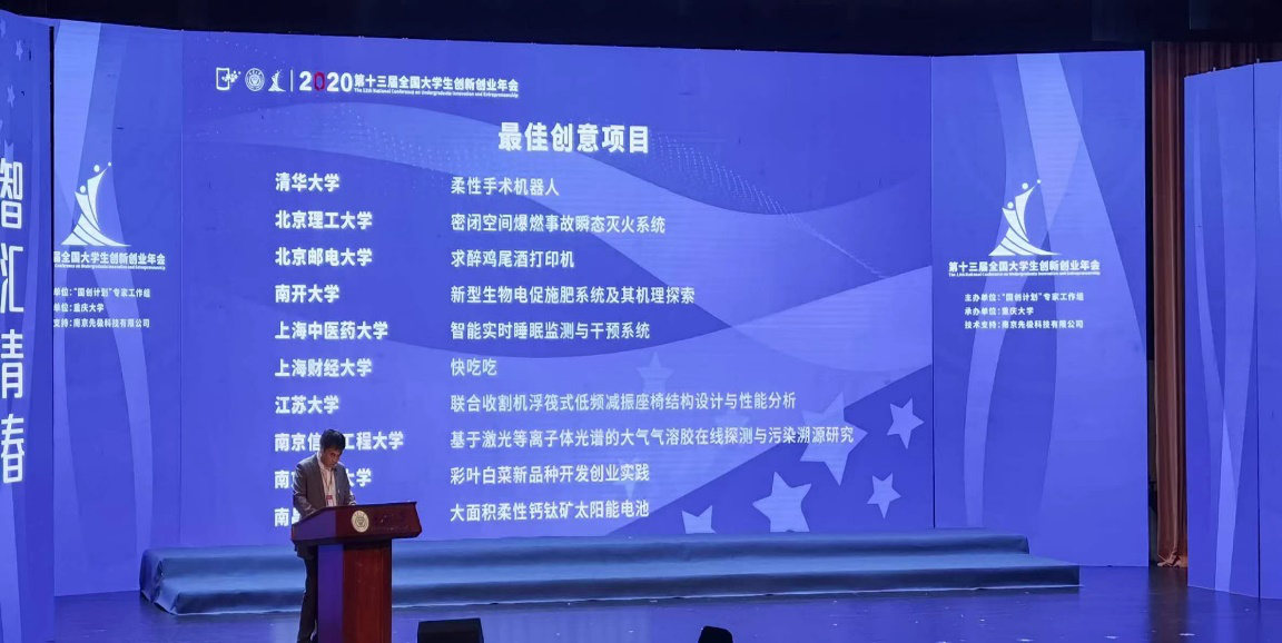 北理工特立学子在第十三届全国大学生创新创业年会上获得“最佳创意项目”奖