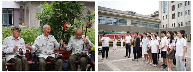7月12日,实践团的部分同学前往八一敬老院,探望革命功臣,传递社会对革命老兵的尊敬与关怀。同学们为老兵们带去唱红歌、拉二胡等有趣活动,和老兵们交谈了当年的战争往事并细心询问他们如今在养老院的日常生活,当谈及当年的战争时,老兵们几度哽咽,同学们深受感动。与老兵们的道别之际,一位老爷爷用毛主席的话激励同学们在日后要大有作为,报效国家。