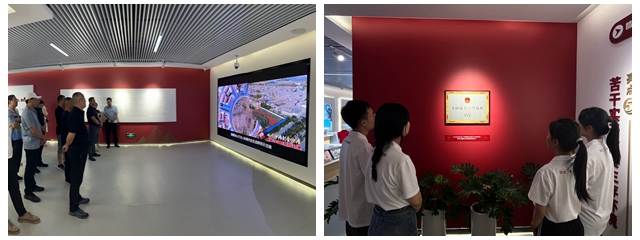 如今的闵宁镇已经成为宁夏著名的“红色阵地”,吸引众多游客来亲身感受这片土地从“干沙滩”到“金沙滩”的沧桑巨变。调研期间,实践团成员参观了闽宁镇镇史馆、非遗扶贫工坊,通过丰富的影像资料宏观把握闽宁镇“易地搬迁,全面脱贫”的光荣历史,感受到这片土地从贫瘠到富饶的壮丽历程;通过精美的手工制品和精巧的非遗技艺触摸闵宁文化脉络,感受闵宁文化魅力;更见证了当地人民以宣传闵宁文化为抓手,实现“家门口就业”,加入迈向共同富裕的步伐。